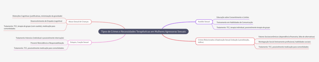 Os crimes sexuais cometidos por mulheres podem incluir abuso sexual de menores, assédio sexual, estupro, coação sexual, dentre outros. Cada tipo de crime exige uma abordagem específica no tratamento.