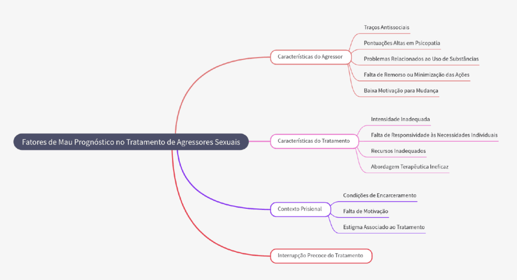 A efetividade do tratamento para agressores sexuais depende da capacidade de abordar esses domínios criminogênicos de forma integrada e individualizada. Além disso, é importante considerar fatores de responsividade, como a motivação do agressor para mudança e a presença de psicopatia, que podem influenciar a resposta ao tratamento (Andrews & Bonta, 2003). A literatura sugere que o tratamento é mais eficaz quando os agressores de alto risco recebem intervenções intensivas e específicas, enquanto aqueles de baixo risco podem se beneficiar de intervenções menos intensivas (Friendship, Mann, & Beech, 2003). A abordagem de tratamento para agressores sexuais deve ser baseada em uma avaliação cuidadosa dos fatores criminogênicos e das características individuais do agressor. A integração dos princípios de risco, necessidade e responsividade, juntamente com a atenção aos domínios criminogênicos, pode aumentar significativamente a efetividade do tratamento e reduzir o risco de reincidência.